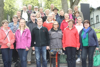 Retkelle osallistui 26 henkilöä. Tässä retkeläiset yhteiskuvassa, kameran takana retken johtaja Jorma Luoma.